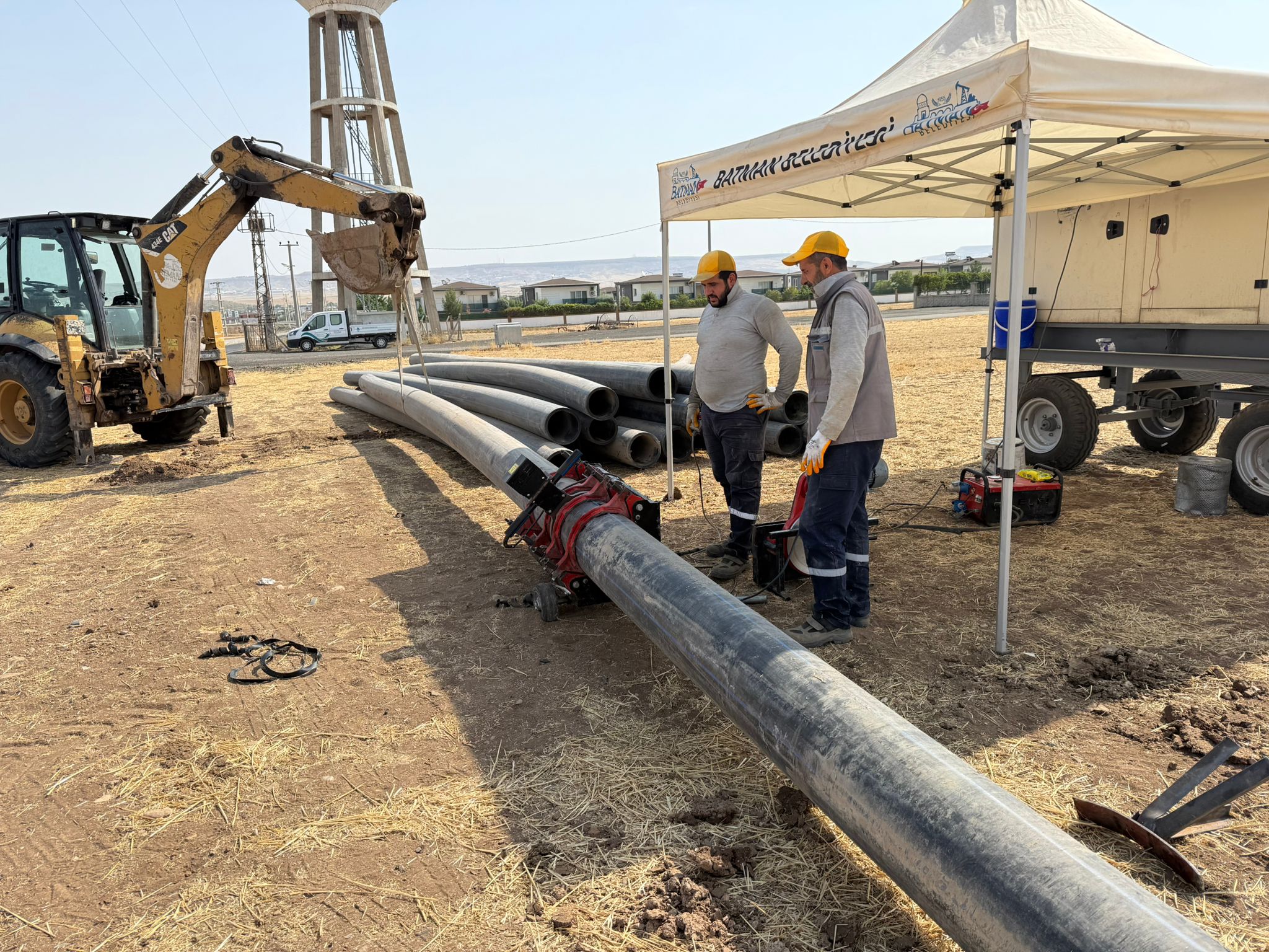 Batman Belediyesi Hayvan Bakım ve Rehabilitasyon Merkezi yanında inşa edilen 1000 ton kapasiteli içme suyu deposuna bağlantı sağlayacak ana hat döşeme çalışmalarına başlandı.