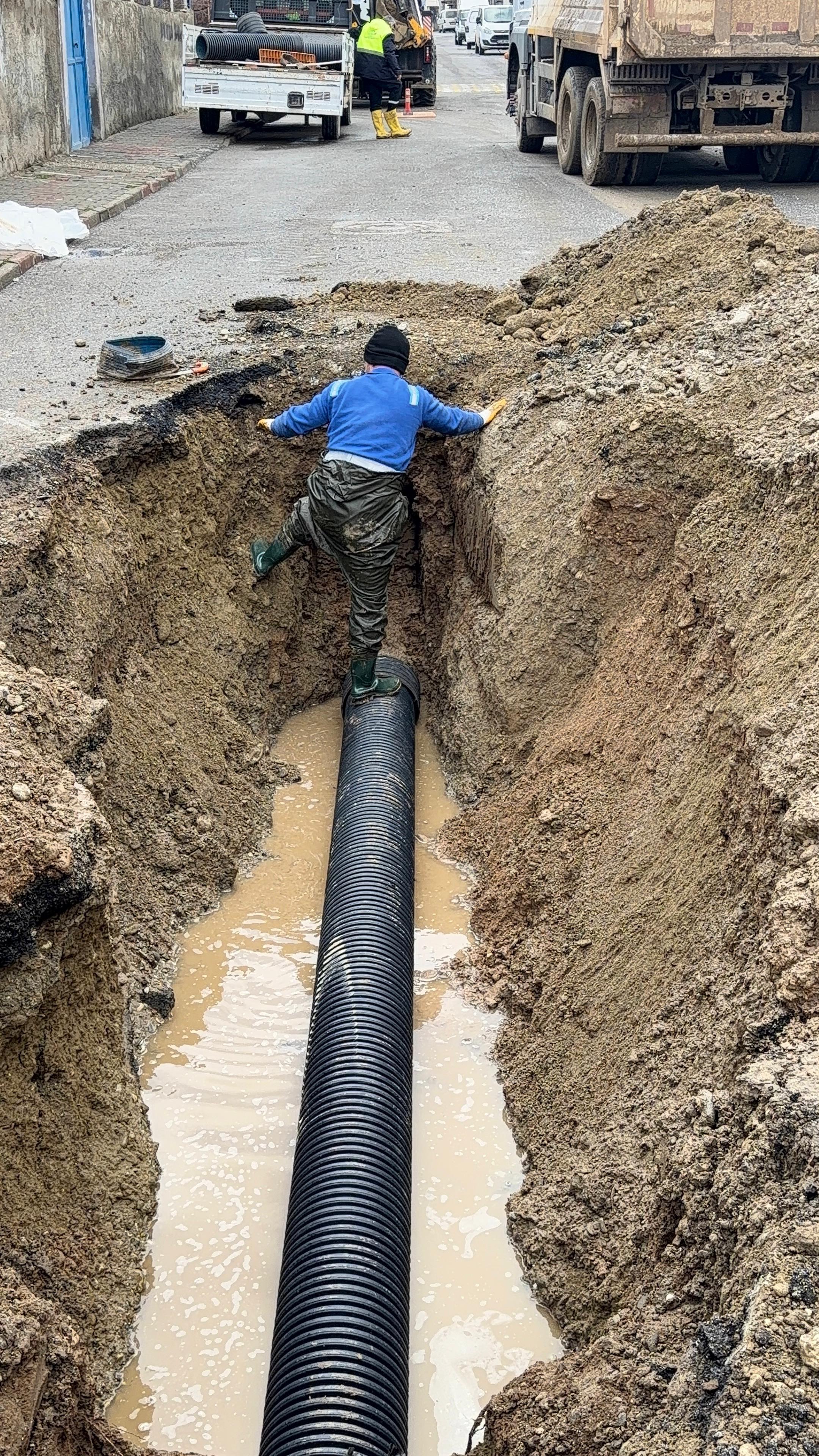 Arızanın tespit edilmesinin ardından bölgeye yönlendirilen ekipler, 12 metre uzunluğunda ve 2,5 metre derinliğinde kazı çalışması gerçekleştirerek sorunun kaynağına ulaştı.