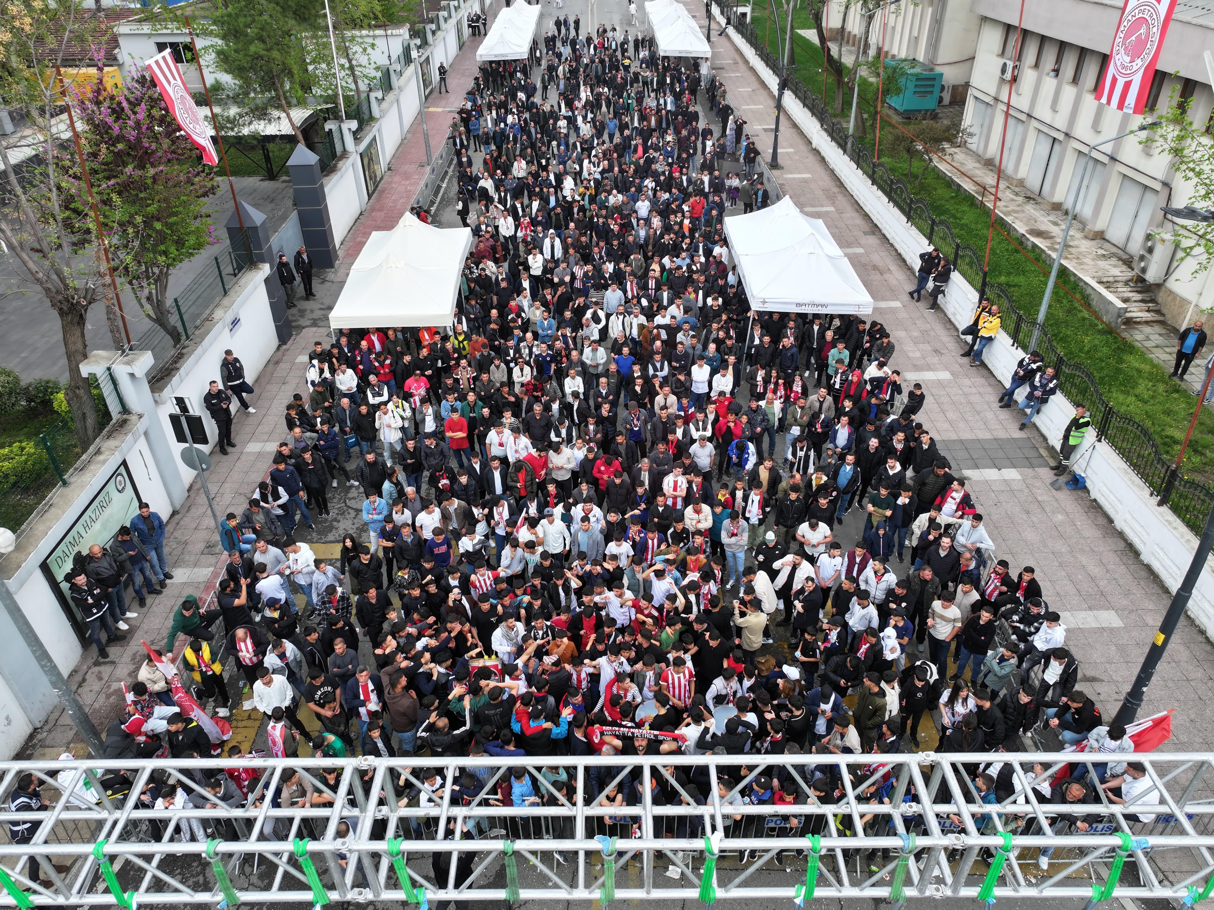 Valilik çevresini Kırmızı-Beyaza bürüyen Batmanlılar, ellerindeki bayrak ve flamalarla, tezahüratlar yaparak takımlarına destek verdi.