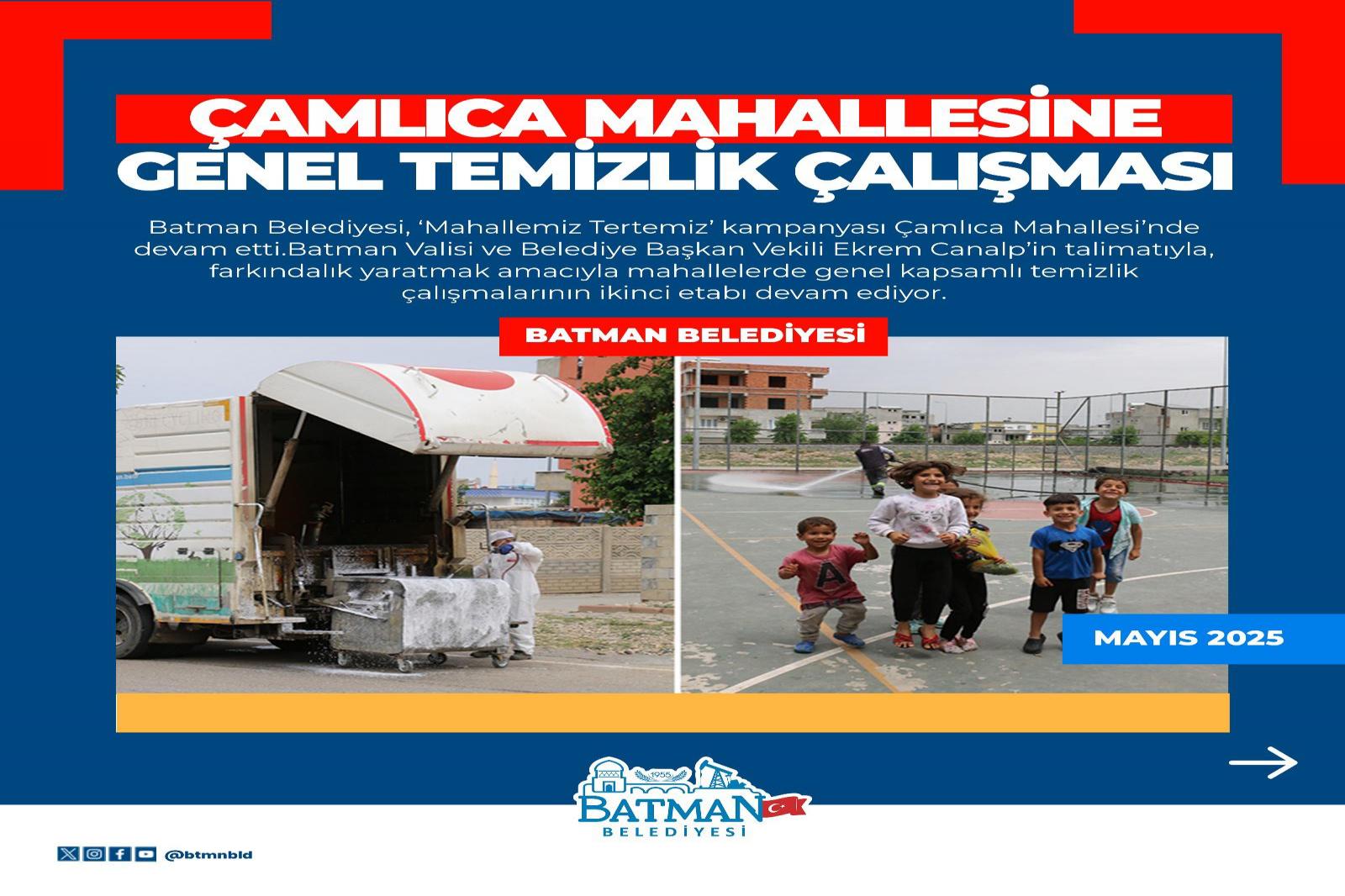 Batman Belediyesi, ‘Mahallemiz Tertemiz’ kampanyası Çamlıca Mahallesi’nde devam etti.